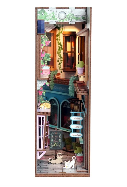 Nestled amidst the cobblestone alleyways of Santorini, this book-nook kit transports you to an island of love, where whitewashed walls stand adorned with vibrant bursts of bougainvillea. The vivid colors of the kit mirror the enchanting palette of this Mediterranean haven. Its construction, akin to the sturdy architecture of Santorini, exudes a sense of permanence and strength. Assembling this piece becomes a journey, much like wandering through the winding lanes of the island, discovering hidden gems at every turn. This book-nook is a tribute to the romance that permeates the air in the alleyways of Santorini, it’s motion sensor, that operates on batteries to allow you to place it anywhere you choose, just as you would explore the secret corners of this Greek paradise.