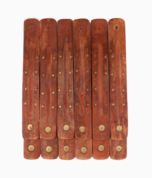 11″ Hand Painted Patterned Mango Wood Incense Stick Ash Catcher w/ Sun Bursts (Single)